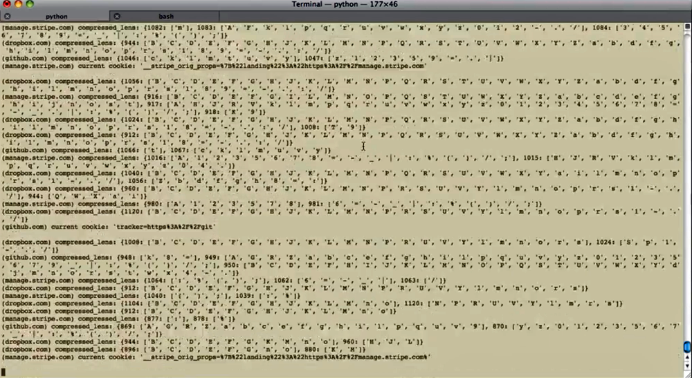 Even when a browser is vulnerable, an HTTPS session can only be hijacked when one of those browsers is used to connect to a site that supports SPDY or TLS compression. The Qualys SSL Labs page, which tracks the quality of sites that offer HTTPS protection, shows that services offered by Google and Twitter support SPDY. Ivan Ristic, director of engineering at Qualys, told Ars that 42 percent of sites surveyed by his service support TLS compression. A demonstration video taken by Rizzo and Duong on Wednesday shows Github.com, Dropbox.com, and Stripe.com, when visited with a then-patched version of Chrome, succumbing to the CRIME attack, although all three of those sites had disabled compression at time of writing, meaning they are no longer vulnerable.