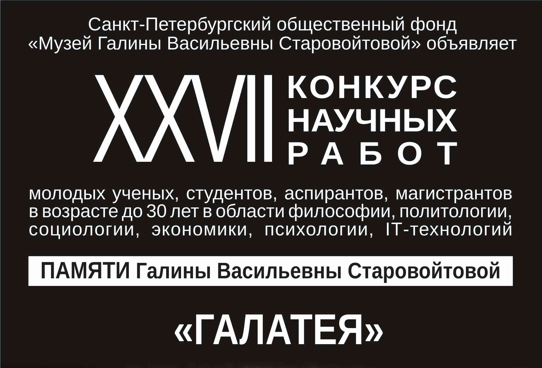 XХVII конкурс научных работ памяти Г. В. Старовойтовой "Галатея"