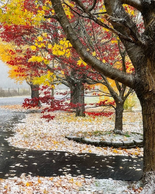 Robert writes, "There are, in my opinion, opportunities where cell phone photography gets the upper hand over the expensive 'real' camera systems. Simply meaning ~ convenience! Today was one of them. While I was out in the woodworking shop, working on orders, this snow squall came through Cane Valley, and peering out the shop window, I noticed some beautiful contrasting colors happening. Realizing it would likely be a short lived event, I grabbed the cell phone and headed out the door rather quickly, and within a few seconds noticed my neighbors driveway had a very scenic, and potential photo.