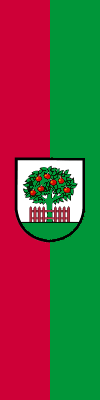 The coat of arms was granted in 1996; it is found in State Official Gazette Resolution No. 115 of that year. Described as: "In a silver shield on a green shield base, a green apple tree with seven red and gold fruits, in front of it a red fence." It is a canting arms; the apple tree behind a fence is a representation of its name ("tree garden"). The fence and color silver correspond to the coat of arm of Ulrich von Grafeneck, a historically important landowner who expanded Baumgarten Castle. The apples in red and yellow correspond to the state colors. Banner adoption date unknown; it uses the colors: red and green.