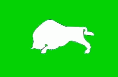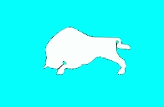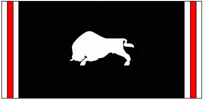 In reports of German TV ZDF, I could see different flags of the political opposition group "Bison" (a European buffalo, living in Belarus and Poland) in Minsk/Belarus. One was hanging in one of the HQ at the wall. It was black with a side view silhouette of a white Bison in the center. At the right and the left side were thin vertical white-red-white stripes. Other flags were shown at a demonstration, yesterday in Minsk. Again the white Bison, but on different coloured backgrounds. I saw red, light blue and green variations, all without the white-red-white-stripes. I found the homepage of the Bisons (Zubr): <www.zubr-belarus.com>.