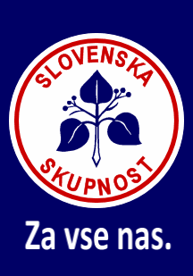 The emblem of the SSk is a blue lime sprig in a circle with the words "Slovene Community," which are red in color, while the background is white.