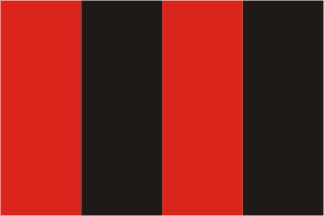 The flag of the Idoma Kingdom is a has four equal vertical stripes of red, black, red and black, with red at the hoist and black n the fly.