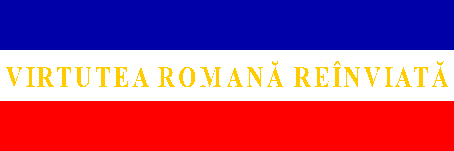 A flag used by Transylvanians of Romanian ethnicity within the Revolution of 1848. The golden inscription on white says "Virtutea Romana Reinviata" (in Romanian), or "Virtus Romana Rediviva" (in Latin), meaning "Revived Roman Virtue". Some Romanian historians say that the role of the golden inscription was to express the affiliation between Transylvanians of Romanian ethnicity and Romanians from the Danubian Principalities (that is Moldavia and Wallachia), but this is a highly argued subject among historians.
