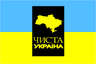 Movement "Clean Ukraine" (Chysta Ukrayina) – national bicolor, black recktangle with country map and name of movement in the centre.