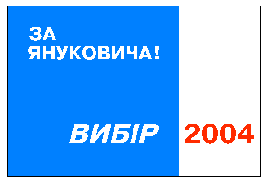 Here is the main flag of Victor Yanukovych's electoral block. Text in Ukrainian: "ZA YANUKOVYCHA!" (= for Yanukovych!) and bottom – "VYBIR 2004" (= choice 2004).