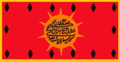 - On the right, it shows a slighlty different version of "Tippu Sahib's flag", being actually a Naval flag. This variant shows a much wider red stripe near the canton, featuring the same eight-pointed sun featured on #17-41b, but much smaller. In this forum, TWC (Total War Center), based on "Total War", a,computer series of strategy games (source), there's a discussion regarding "State, Regimental and Naval Flags - Mysore". First, two versions of the green flag (#17-41) are shown: