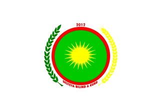 The Movement for a Democratic Society (TEV-DEM), a coalition led by the PYD, declared a new administration. The party flag pf the TEV-DEM, the yellow-red-green tricolor, entered widely in use as the flag of Rojava. Although the article sent by William is dated 2019, the white flag with DBK logo was not any more in use (at least in theory) after 2013.