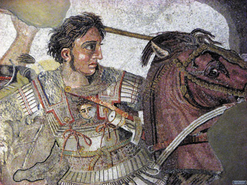 Александр Македонский (356–323 до н. э.) — знаменитый полководец и государственный деятель; сын македонского царя Филиппа II и его жены Олимпиады. Филипп рано стал приобщать сына к государственным делам. Отправившись в поход против Византии, он оставил 16-летнего сына управлять государством, а в битве при Херонее А. командовал конницей, решившей исход сражения. Смерть Филиппа (336 до н. э.) поставила А. в тяжелое положение. Событие вызвало в Греции взрыв энтузиазма, но с поразившей греков быстротой македонская армия оказалась в сердце Эллады. Едва успев справиться с проблемами в Греции, А. был вынужден срочно отправляться на север против восставших фракийцев и иллирийцев. Долгое отсутствие А. породило слухи о его гибели. В Фивах был осажден македонский гарнизон, началась подготовка к войне с Афинами. Но А. стремительным маршем повел армию на выручку своего гарнизона, Фивы были взяты и полностью разрушены. Весной 334 до н. э. А. переправляется через Геллеспонт и вступает на земли Азии. Численно армия А. намного уступала персидскому войску, но была великолепно подготовлена, обучена и вооружена. Основу боевого построения составляла македонская фаланга, большую роль в походе сыграла конница. Помимо собственно воинов, в армии хорошо были организованы снабжение, разведка, служба связи.