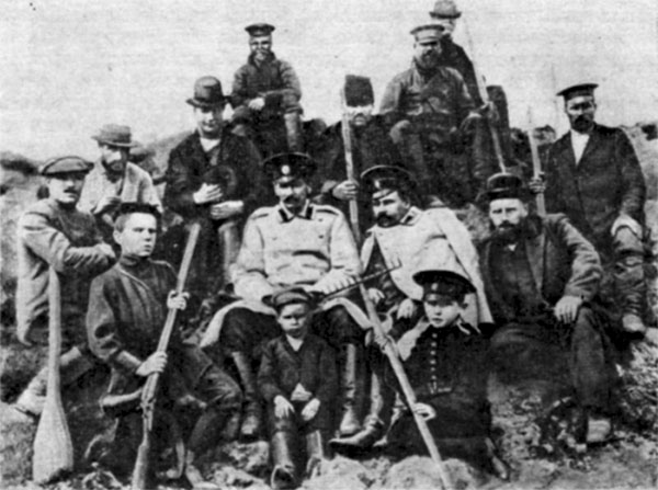 В.К. Арсеньев (в военной форме слева) с группой участников одного из походов.