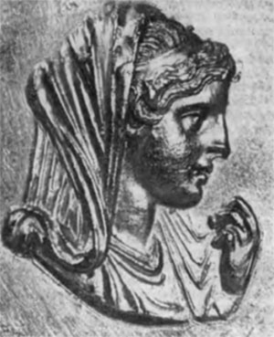 Золотой медальон римского времени с изображением Олимпиады. Археологический музей. Солоники.