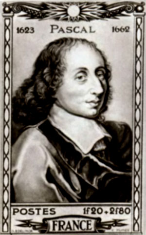 Паскаль Блез (1623/1662) — французский писатель, философ. С 1655 г. вел полумонашеский образ жизни. Под его влиянием в значительной степени развивалась иррационалистическая традиция в философии и формировалась французская классическая проза. Его перу принадлежит один из блестящих образцов французской сатирической прозы — «Письма к провинициалу» (1657). В христианстве видел путь постижения тайн бытия и спасения человека от отчаяния. В «Мыслях» (1669) отразил свое понимание трагичности и хрупкости человека, находящегося между бесконечностью и ничтожеством (человек — «мыслящий тростник»).