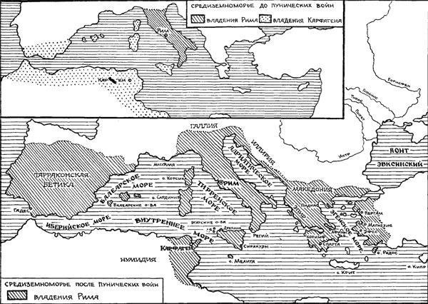 Пунические войны 264-146 до н. э., захватнические войны между Карфагеном и Римом Древним за господство сначала в Сицилии, а затем во всём Западном Средиземноморье. Название войн связано с тем, что римляне называли карфагенян пунийцами. Всего было 3 П. в., составившие важный этап в развитии воен. иск-ва эпохи рабовладельч. общества. (Карту см. на вклейке к стр. 416). 1-я Пуническая война (264— 241 до н. э.). Осн. причиной войны явилась борьба за Сицилию. Поводом к ней послужил возникший в 264 до н. э. конфликт из-за сицилийск. г. Мессана, захваченного восставшими сиракузскими наёмниками (мамертинцами). Правитель Сиракуз Гиерон II, желая вернуть город, начал воен. действия против мамертинцев, которые обратились за помощью одновременно к Риму и Карфагену. Между прибывшими в Сицилию рим. и Карфаген, войсками произошло столкновение, положившее начало воен. действиям. Римляне нанесли поражение карфагенянам и захватили Мессану (264). В 263 Сиракузы стали союзником Рима.