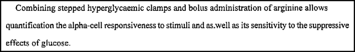 Just as glucose modifies the beta cell response to non-glucose stimuli, it also strongly influences the alpha cell response to other provocative stimuli. Hyperglycaemic clamps using variable-rate glucose infusions can therefore be combined with arginine stimulation tests to characterise alpha cell function more fully. Figure 1 shows results from a study in which the AGRarg was measured at basal glucose and at two levels of hyperglycaemia [25]; the glucagon response to arginine falls as glucose levels are increased.