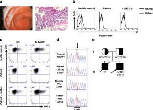 Genetic analysis revealed a bi-allelic mutation in IL12RB1 (C291Y) resulting in complete IL-12Rβ1 deficiency. Functional analysis demonstrated the lack of intracellular production of IFN-γ in CD3+ T lymphocytes from the patient in response to rhIL-12p70.