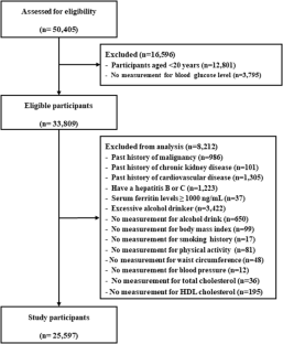 Elevation of serum ferritin levels is frequently observed in non-alcoholic fatty liver disease (NAFLD) patients. Our study aims to examine the association between serum ferritin levels and NAFLD in Korean population.