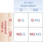 The G/NG case indicates that the model over‐estimates the metabolic capabilities of the organism, while the NG/G case indicates that the model under‐estimates the metabolic capabilities of the organism. Metabolic over‐predictions are commonly caused by reactions that are absent in vivo, reactions that are down‐regulated or inhibited under a specific environmental condition, or the biomass formulation is includes an erroneous metabolite. Metabolic under‐predictions often represent knowledge gaps in that the model does not account for an unknown isozyme, parallel pathway, or some other functionality of the organism. G/G can be regarded as a consistency check and NG/NG can be regarded as a form of model validation.
