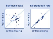 - Synthesis rates for individual proteins are extensively regulated, in contrast to degradation rates that mostly remain constant in response to differentiation.
