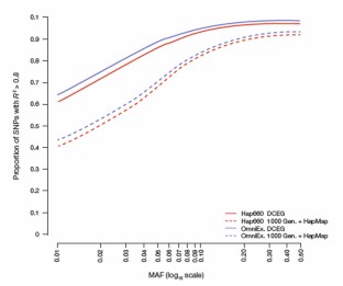 Figure 1: Imputation accuracy for individuals of European ancestry with the DCEG Reference Set and publicly available reference sets.
