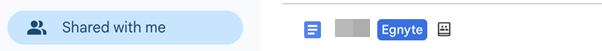 In the current version, users can create new files in Workspace through the Create menu, with files stored directly in Egnyte. The functionality remains intact in the upgraded version, but with an enhancement - these files are now stored in Egnyte, accompanied by a copy in Google Drive for Google files. All users apart from authorized users, will see all the files in Shared with me with an Egnyte label.