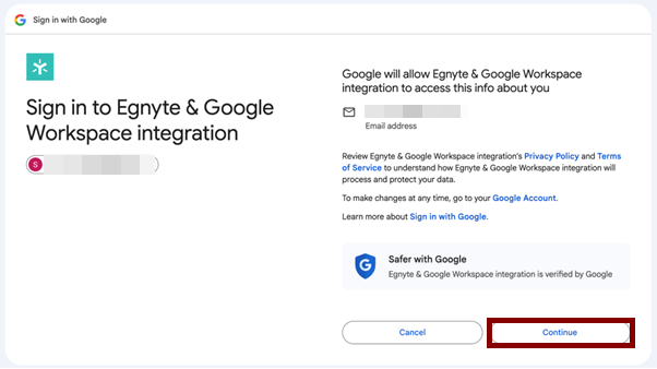 It is required to create a new Workspace account with a generic name and use that email to authorize the Google integration of the domain. Additionally, please make sure that this email address is not affiliated with a corresponding Egnyte user.