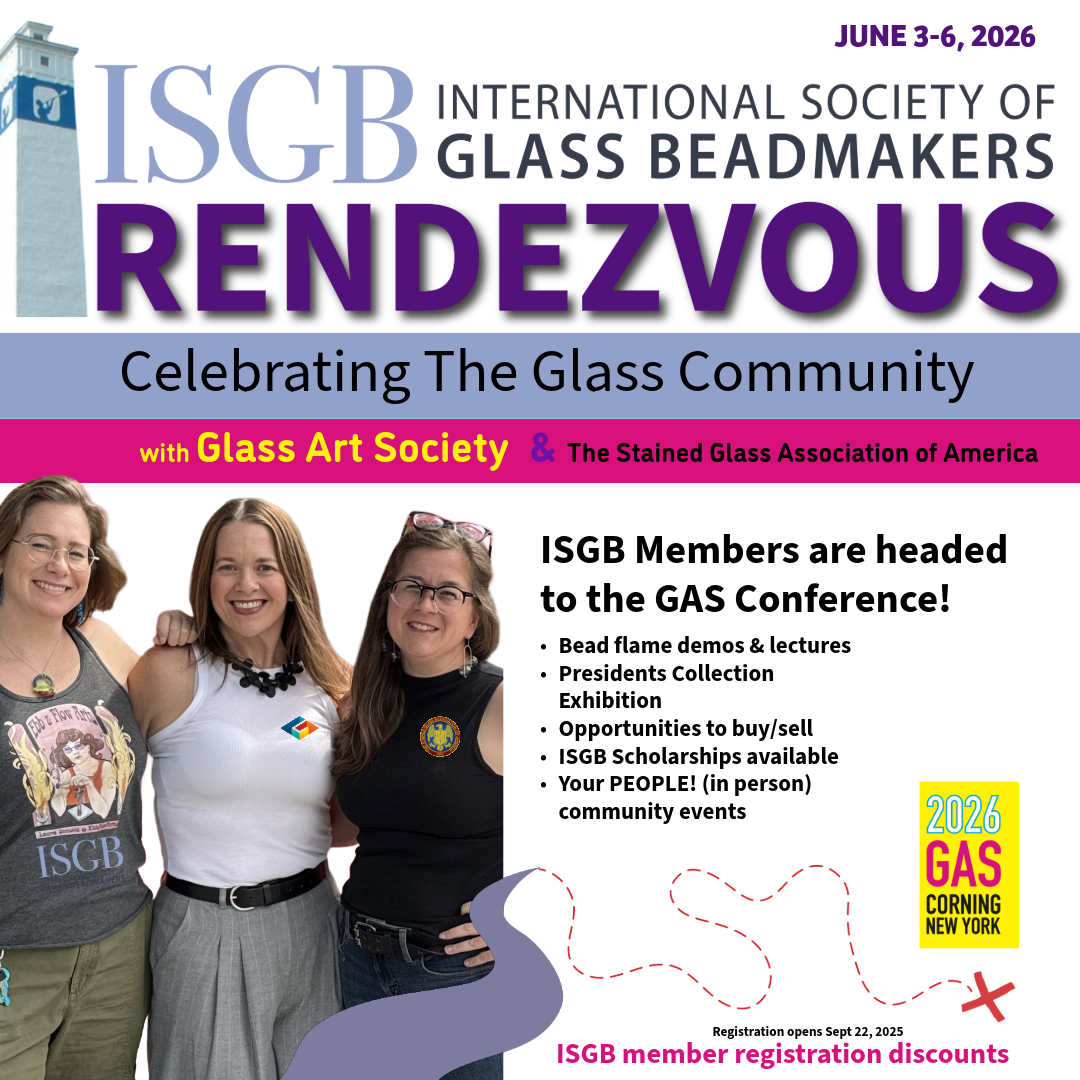 We’re thrilled to announce that the International Society of Glass Beadmakers (ISGB) will be an official part of the Glass Art Society (GAS) Conference, happening June 3–6, 2026!