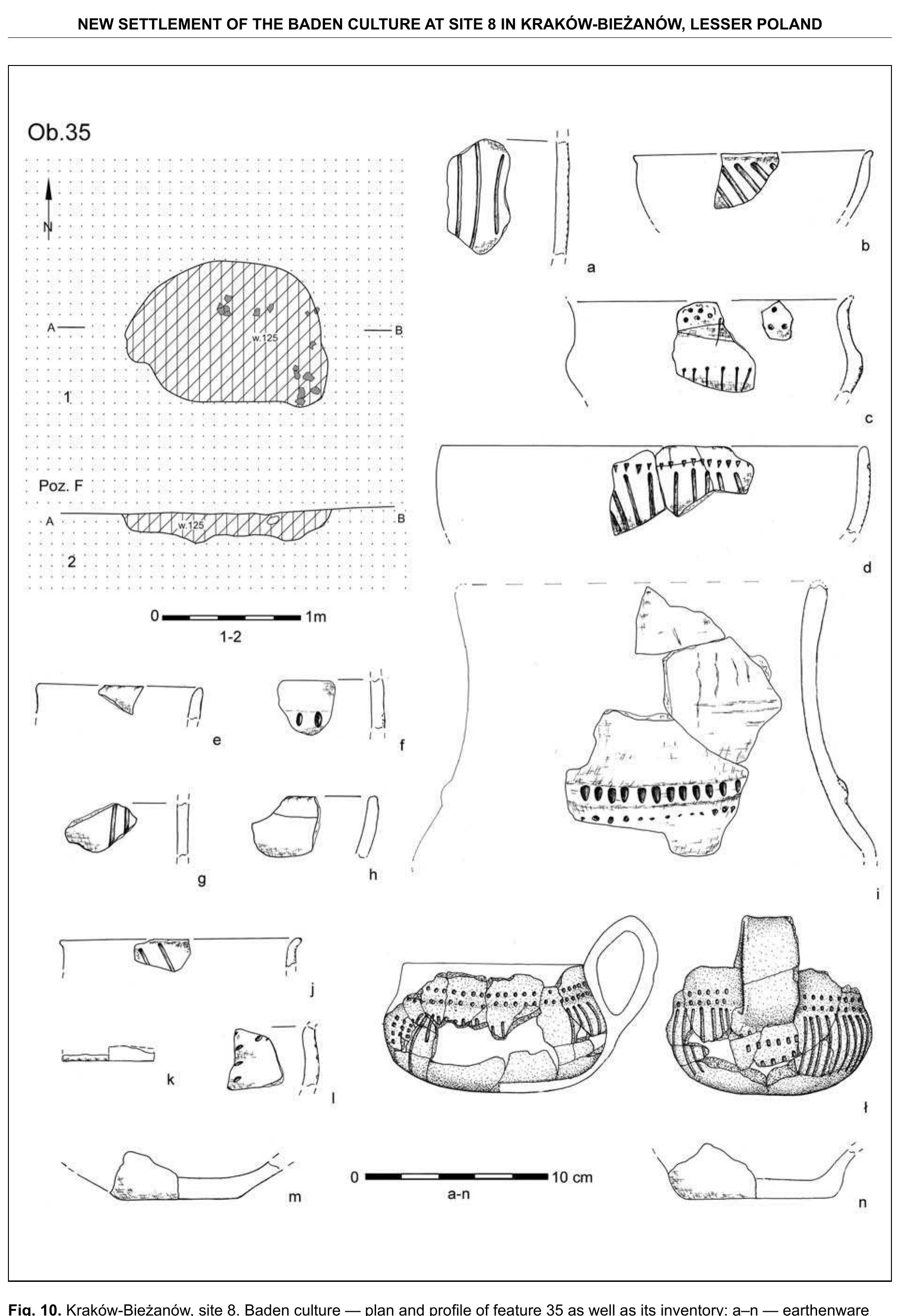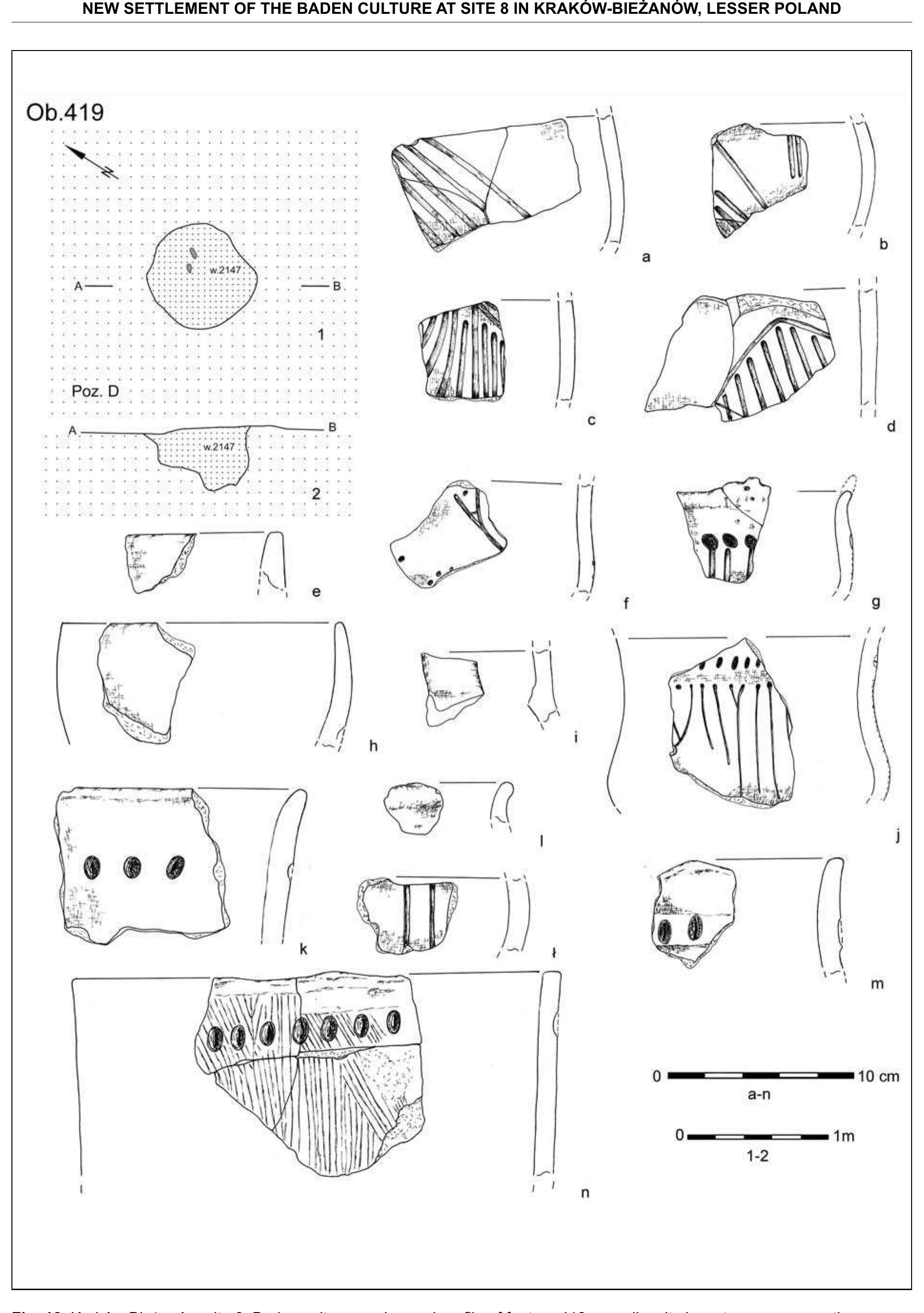 Marta Kaflinska, Irena Wojcik, Damian Stefanski . 15. Krak6w-Biezanow, site 8. Baden culture — plan and profile of feature 422 as well as its inventory: a-k — earthenwar