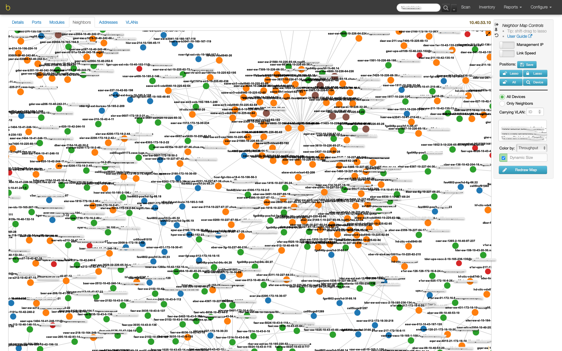 Simplifie la recherche. Il vous suffit d'entrer des informations telles que le nom de l'appareil, son adresse MAC ou IP et SPM trouve l'emplacement en quelques secondes. Un inventaire de votre infrastructure réseau, l'actualisation automatique des données, le mappage d'étoiles et de nombreux autres rapports pertinents pour votre réseau.