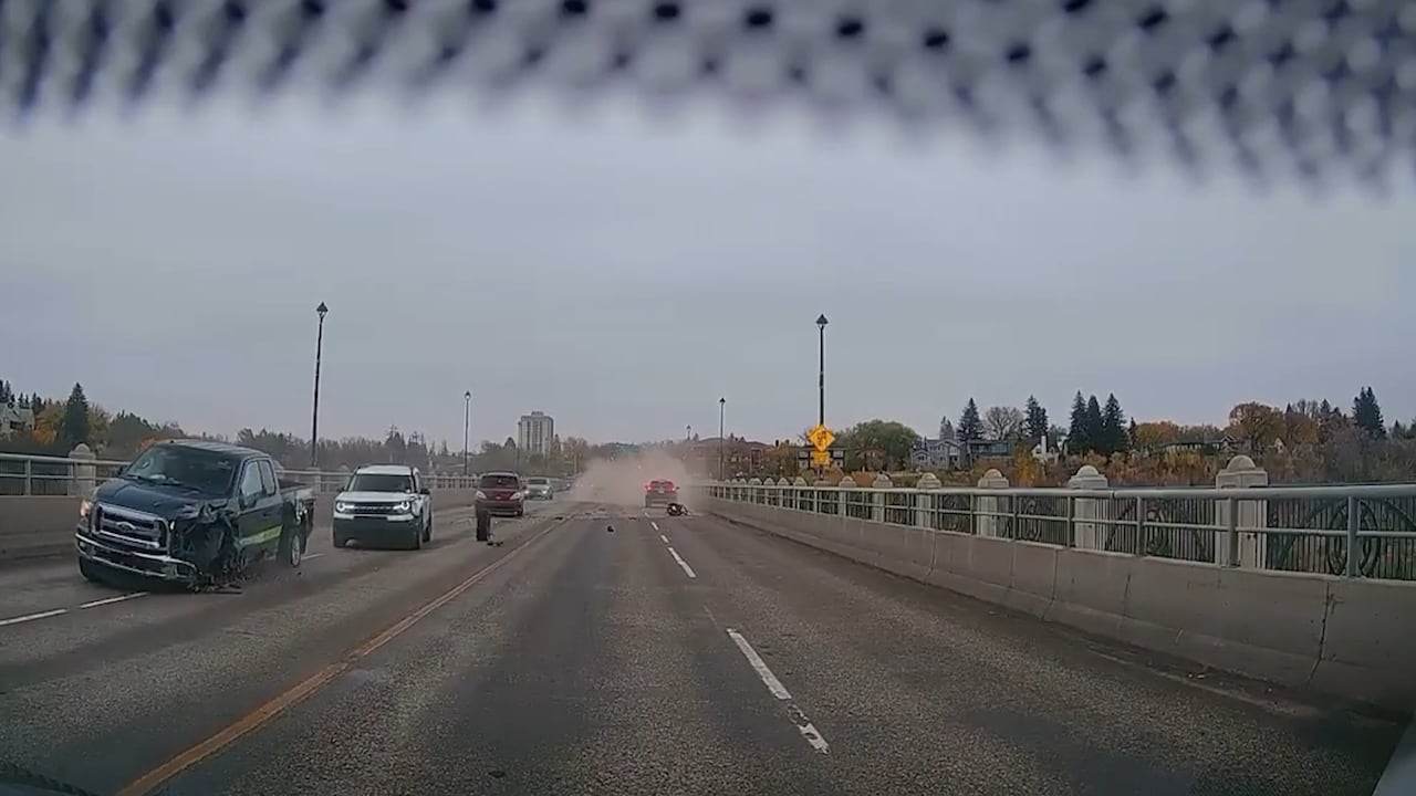 Video0:30Dashcam shows driver hit truck on University BridgeOctober 16